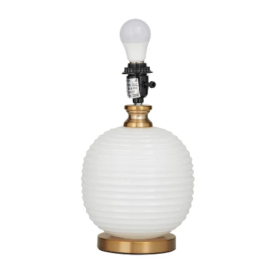 This eye catching lamp makes a charming and chic addition to your surface space and beautifully illuminate its surrounding area. Bring a finishing touch to your home with an inviting appeal with this accent table lamp. A white glass table lamp that brings charm and a modern appeal to any room for an instant decor upgrade. Designed with black stopper at the base that prevent sliding around as well as scratching any surface. Comes with 1 socket for medium-sized E26 bulbs. Bulbs included. This item ships in 1 carton. Cord length measures approximately 60″. Suitable for indoor use only. An accent piece featuring a white drum-shaped shade. Power cord on/off toggle switch. Modern Inspired.