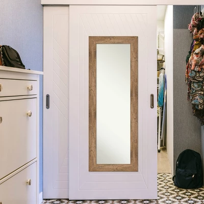 This 100% real wood, full-length Non-Beveled Mirror framed in the Owl Brown frame, complements your decor without the need for unsightly over-the-door brackets. Individually made using traditional custom framing techniques, it has the quality you would expect from your local frame shop. It holds its value with premium finishing that can be appreciated up close. Our On The Door Mirror has two hooks to hang directly on your door or wall without additional anchors or brackets. Hang it on the back of a closet, bedroom or bathroom door, or on the wall as a standard full-length mirror. Because of our attention to detail and focus on artistry, architects, interior designers, and homeowners alike choose this mirror to create beautiful living spaces.