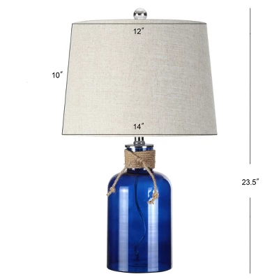 In a shade of blue that calls to coastal sea glass, this glass bottle base is detailed with a nautical rope accent. With a chrome finial and fittings, light refracts through the glass base of the lamp, illuminating your surroundings with a warm glow. With a gorgeous silk-wrapped cord, it’s a versatile style that will bring an understated note of ocean-inspiration to your corner of the mainland.