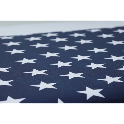 This set of two outdoor lumbar pillows features a navy blue ground with crisp, white stars. This classic, Americana print gives this pattern a casual feel for any outdoor decor. Additional features of these outdoor lumbar pillows include red contrasting welt cords for a clean finish and recycled polyester fiber fill with sewn seam closures. Also suitable for indoor use.