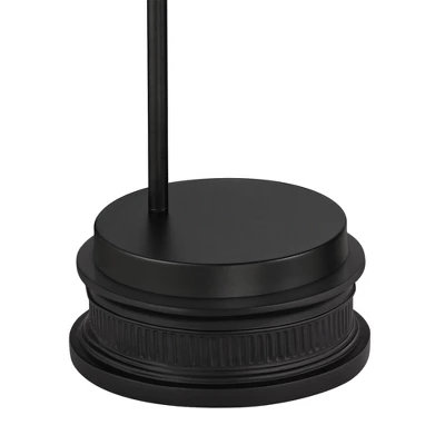 From the 360 Lighting brand, this elegant arc floor lamp with a round black riser offers contemporary styling for your home. It features a widely arching frame in a black finish and a white linen drum shade on top, resulting in a sleek modern look. On the bottom is a round black riser for extra height. A great upgrade for seating areas and living rooms, this floor lamp is great for reading task lighting.
