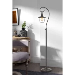 Cal Lighting makes this Metal Lantern Design floor lamp features a Down bridge design. The On/Off rocker switch on the pole operates 1 60W Edison bulb which is included. The cage shade is made of metal. All metal is in Dark Bronze finish. This floor lamp will be a great addition to your living room, family room, office or bedroom. The matching table lamp is also available on Target.com (Sold separately)