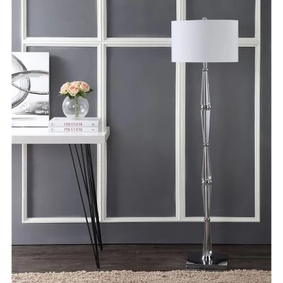 - Chrome and crystal tapered column floor lamp brings modern sophistication to any space