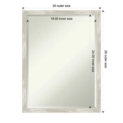 - MIRROR DETAILS: This mirror features premium glass for a clear, undistorted image and is finished with a petite 1/2-inch beveled edge which is more delicate than a traditional bevel. The overall size of this bathroom mirror measures 20 x 26 inches, including the frame. Its reflective area measures 18 x 24 inches.