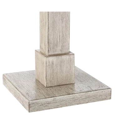 - Pickled wood finish. Solid willow wood construction. Square pedestal base.