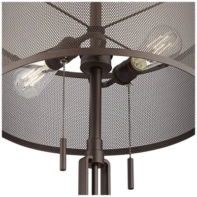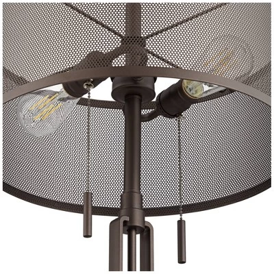 - Bronze finish. Metal construction. Metal mesh shades allow bulbs to be seen. 7-foot long cords.