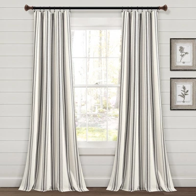 - These farmhouse stripe curtains have a simple yet timeless design to add a cozy cottage charm to your home. They are made from eco-friendly recycled cotton and are sold by the pair. Accent your bedroom or living space with these stylish striped panels.