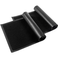 SET OF 2: Each set includes two heavy duty ribbed door mats, measuring 17 x 30 inches in size. DURABLE: Strong 500 GSM 100% recycled PET polyester fibers and non-slip 2500 GSM PVC back make this indoor/outdoor mat suitable for any climate and use. Plus it is weather-proof! KEEP YOUR HOME CLEAN: Perfect to use on the patio, in the garage, or any entryway to keep dirt, dust, muck, and mud out of your home. MULTI-USE: Perfect for mud-rooms, entryways, patios, garages, laundry rooms, kitchens, warehouses and industrial spaces, store fronts, offices, retail shops, commercial spaces, restaurants, or any high traffic areas