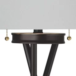 A contemporary take on the mid-century tripod, this floor lamp features three metal legs joined by a single ring and a linen drum shade. There are two chain pulls that allow for a customizable light source. This floor lamp is intended for the casual and comfortable home that’s looking for a sleek and modern touch.
