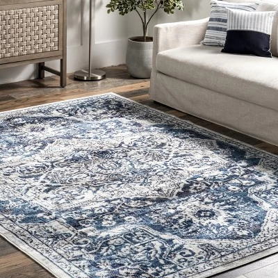 A twist on a classic medallion design, this transitional area rug elevates any space through its sophisticated color palettes. Machine made of polypropylene; you can rest assured knowing you have the refined look of an heirloom piece with the easy upkeep of a synthetic fiber. Pair with any of your existing décor from traditional to modern, this floor covering is sure to be the centerpiece of the room. Never settle for anything less than perfection with our pet-friendly and easy to care for area rugs.