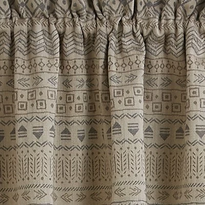 Uplift your living space by introducing an intricate patterned window swag. This beautiful window accessory features a unique gray and beige pattern of shapes. Introduce this beautiful piece to your space to invite a fresh look without having to redecorate the entire room.