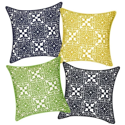 It’s hard to believe that this Embroidered Lacework Throw Pillow is sturdy enough to go outside, but it can! This toss pillow is heavily embellished with detailed embroidery on the face. This pillow enhances your outdoor living areas with comfort, style and color. Put one or more on an outdoor chair or sofa on porch or deck, or decorate with them inside in living room or bedroom. Generously sized pillows add a cozy touch anywhere. The classic design and color selection make this pillow a natural fit into any kind of dĂ©cor. It will complement wood, metal or upholstered furniture equally well. Weather-resistant polyester pillows have hidden zippers and polyfill inserts. Spot clean. Imported.