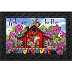 Spring Nuthouse Doormat Squirrels Humor Indoor Outdoor 30″ X 18″ Briarwood Lane