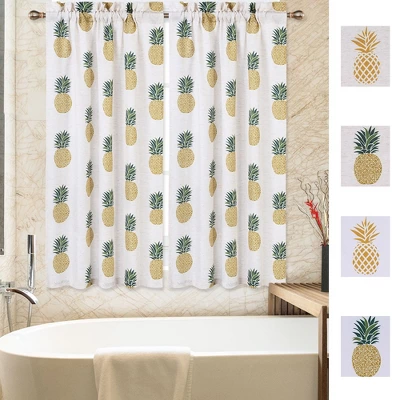 Ready Made: 2 panel per package. Each panel measures 30W x 24L Inches( from top edge of installed rod to bottom) Stylish Design: Decorative pineapple pattern works well with many decorating style: Modern farmhouse style, French Country Style, rustic/country style, etc Fits Well: 2-Inch high rod pocket works well with tension rods or normal rods for easy hanging, and you can adjust the length by being styled in rod pocket or with your own clip-rings. Serve Well: Allows nature light n while giving you a certain amount of privacy, perfect for kitchen, cafe, bathroom, loft, basement, children’s room, office room and other small windows Easy care: Machine wash cold, gentle cycle, do not bleach, tumble dry low, cool iron as needed. Follow care instructions on label